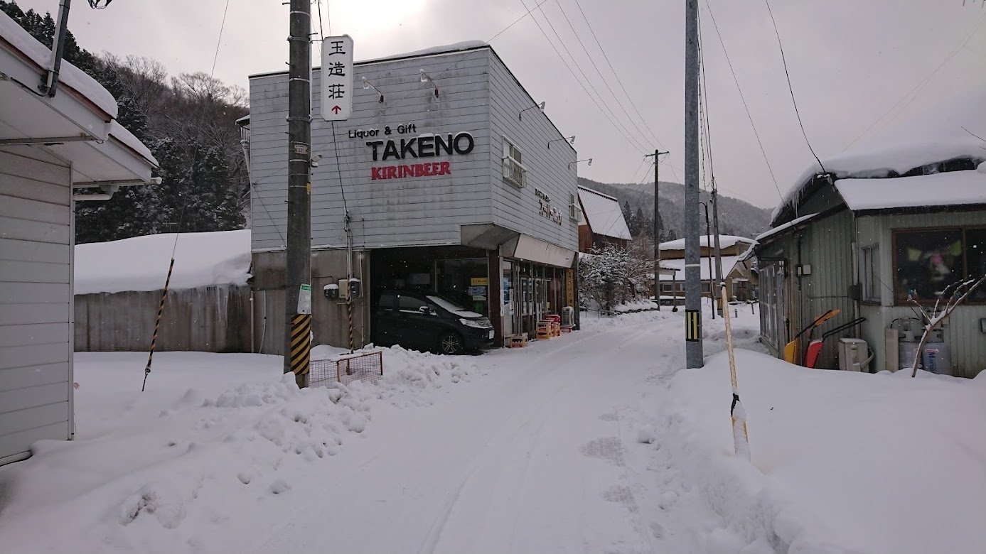 過剰なまでのお裾分け。私はお礼にと高東旅館近くの「竹野酒店」に行き、日本酒「菊水」のカップを2本買い、炊事場でタバコを吸っていたご主人お渡しした。